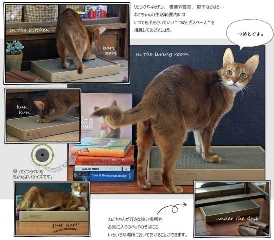 紙の加工技術では有名な福永紙工さんと一緒にサイズから素材、加工方法を一から検討して作りました。精密で丁寧な作業は日本ならではの技術です。猫さんも安心して爪とぎすることが出来ると思います。
