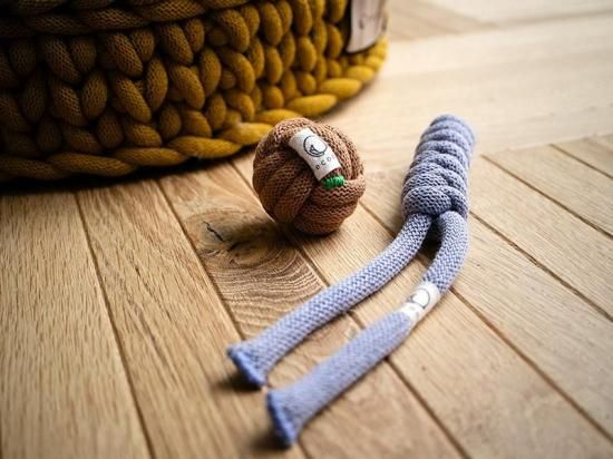 ※引っ張って遊ぶとロープは伸びて結び目がきつく締まります。結び目を緩めると元の状態に戻ります。