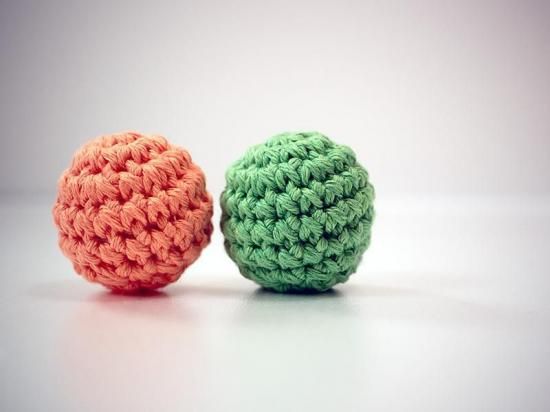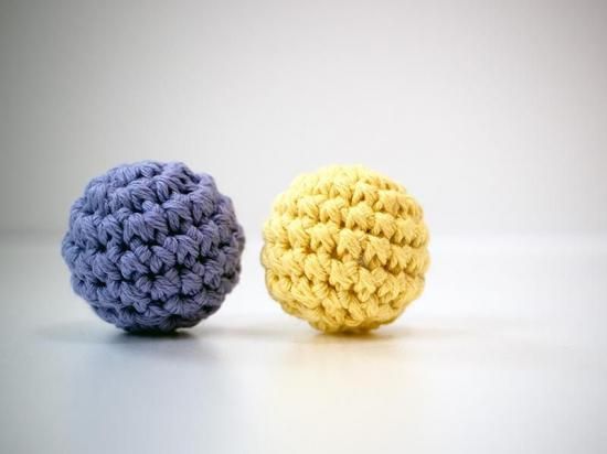 オーガニックコットン100%の糸で手編みされた『あみあみオーガニックコットンボール』2個入り。